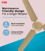 With a focus on air performance, the AK Prosperity Ceiling Fan delivers powerful airflow that ensures proper ventilation, keeping the room fresh and cool.