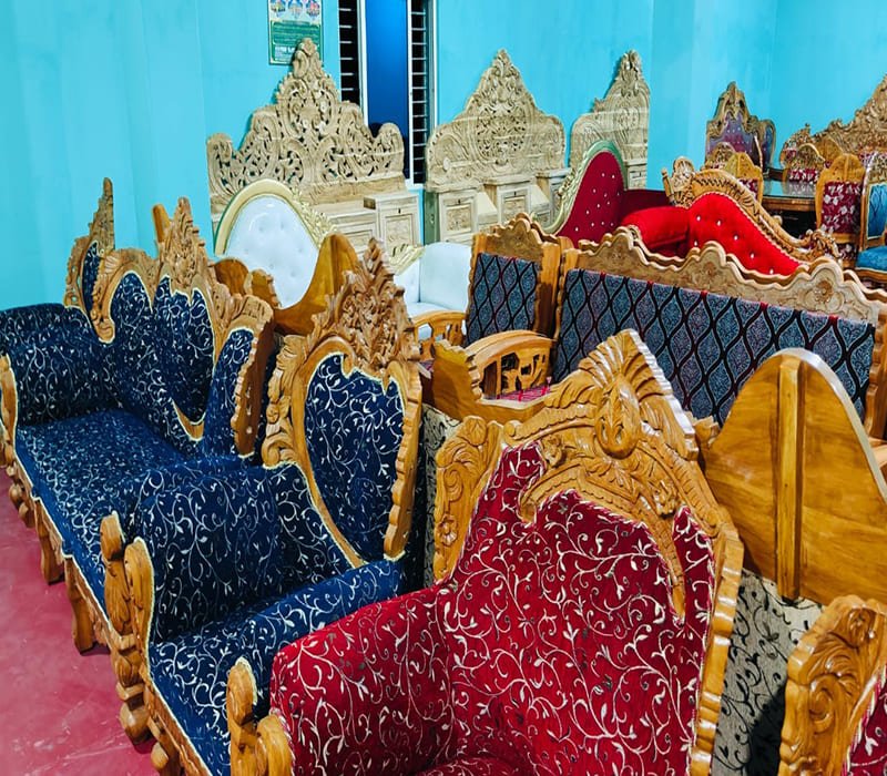 • Design: The mention of “Maharaja” in the name suggests a regal or royal design aesthetic, and the description includes hand-carving work, indicating intricate detailing on the wood. This likely adds an ornate and elegant touch to the sofa set.