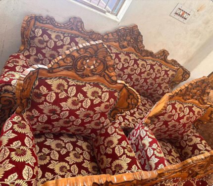 - Design: The mention of “Maharaja” in the name suggests a regal or royal design aesthetic, and the description includes hand-carving work, indicating intricate detailing on the wood. This likely adds an ornate and elegant touch to the sofa set.