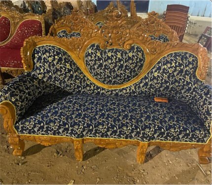 - Design: The mention of “Maharaja” in the name suggests a regal or royal design aesthetic, and the description includes hand-carving work, indicating intricate detailing on the wood. This likely adds an ornate and elegant touch to the sofa set.