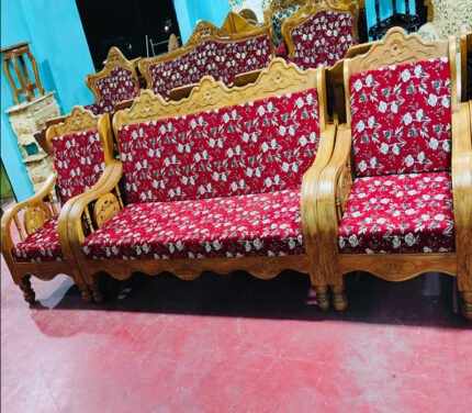 - Design: The mention of “Maharaja” in the name suggests a regal or royal design aesthetic, and the description includes hand-carving work, indicating intricate detailing on the wood. This likely adds an ornate and elegant touch to the sofa set.