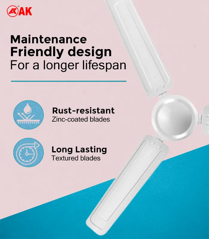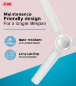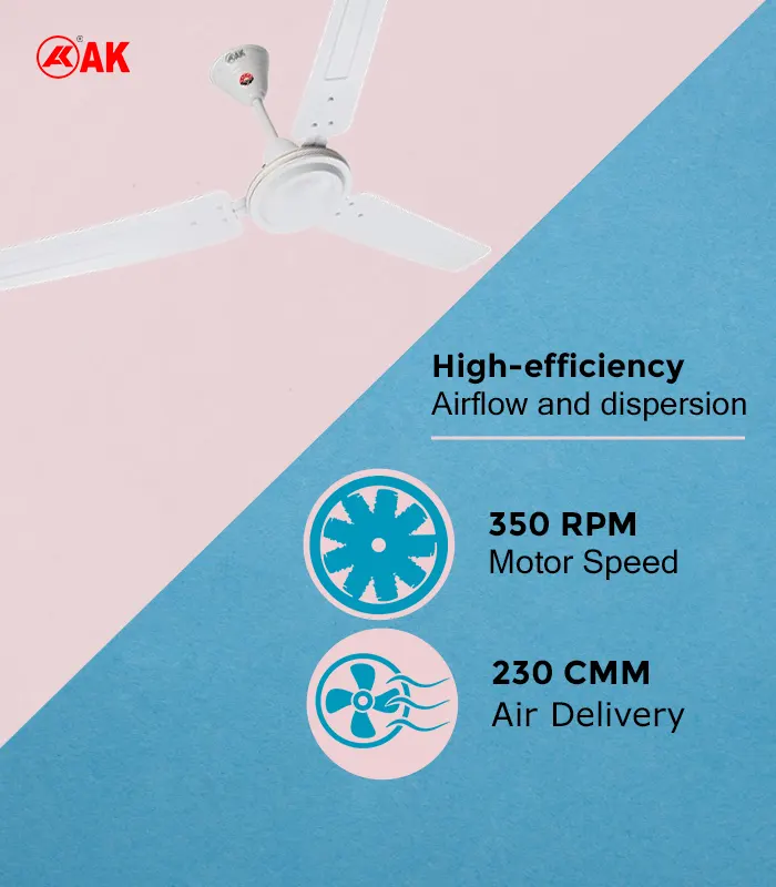 With a focus on air performance, the AK Prosperity Ceiling Fan delivers powerful airflow that ensures proper ventilation, keeping the room fresh and cool.